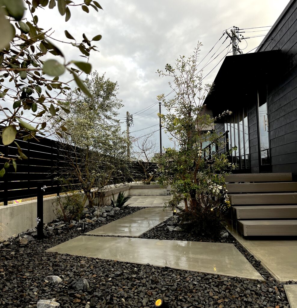 ただ、外構だけでは固く重たい印象になるので、そこに植栽などの造園を合わせて柔らかさや景観を創り出します。